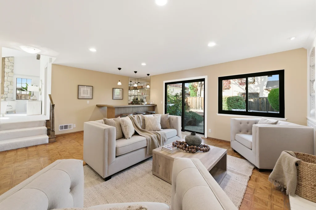 First time ever on the market, this beautifully maintained 4-bedroom, 3-bath home has been lovingly cared for by its original owner. Featuring 2,522 sq ft of living space on an expansive 7,980 sq ft lot, this home delivers space, functionality, and timeless value in one of Sunnyvales most sought-after communities. Featuring one of the most desirable floor plans in the area, the home includes a convenient downstairs bedroom and full bathroom, perfect for guests, multi-generational living, or a private office. Multiple living spaces, vaulted ceilings, and abundant natural light create a warm and inviting atmosphere, while the upgraded kitchen with granite countertops serves as the heart of the home. Thoughtful upgrades throughout include dual-pane windows, copper plumbing, an upgraded HVAC system, new interior paint, and brand-new carpet. Additional highlights include upgraded bathrooms, oversized bedrooms with excellent storage, a three-car garage, and a durable composition roof. The downstairs bar area flows seamlessly to a large, private deck, perfect for entertaining, outdoor dining, or simply enjoying the peaceful surroundings. All of this is located just minutes from Apple Park, top-rated schools, beautiful parks, shopping, and major commute routes.